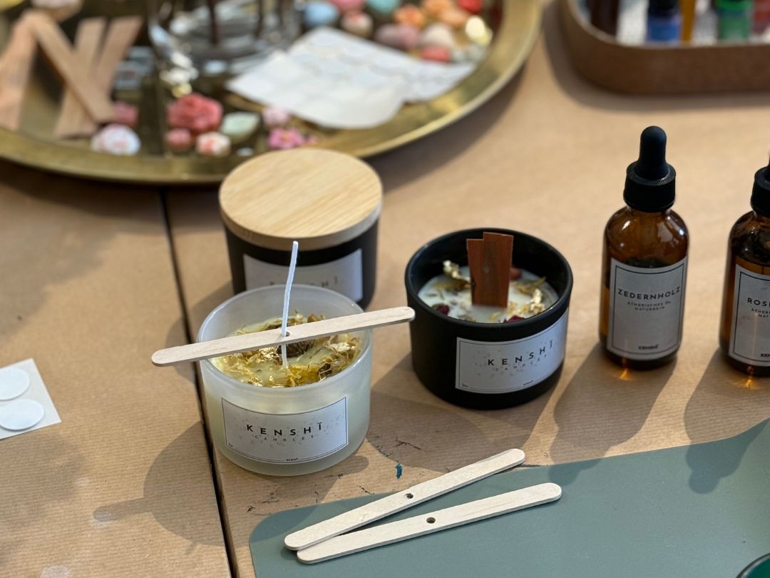 Lust auf deinen ganz persönlichen Raumduft? In diesem Workshop gießt du mit Jessi von Kenshi Naturkosmetik aus Köln drei hochwertige Duftkerzen – 100 % natürlich, vegan und ganz nach deinem Geschmack.